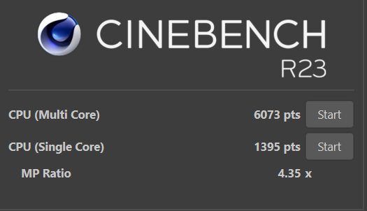 Cinebench R23のスコアで、CPUの3DCGレンダリング性能を測定します。一般的に、3Dレンダリングやエンコードはマルチコア、モデリングやCAD、編集中、ゲームはシングルコアを重視します。