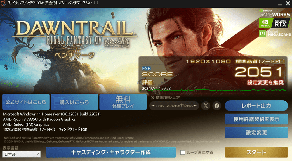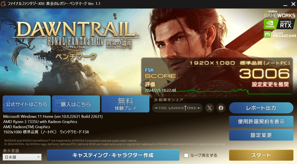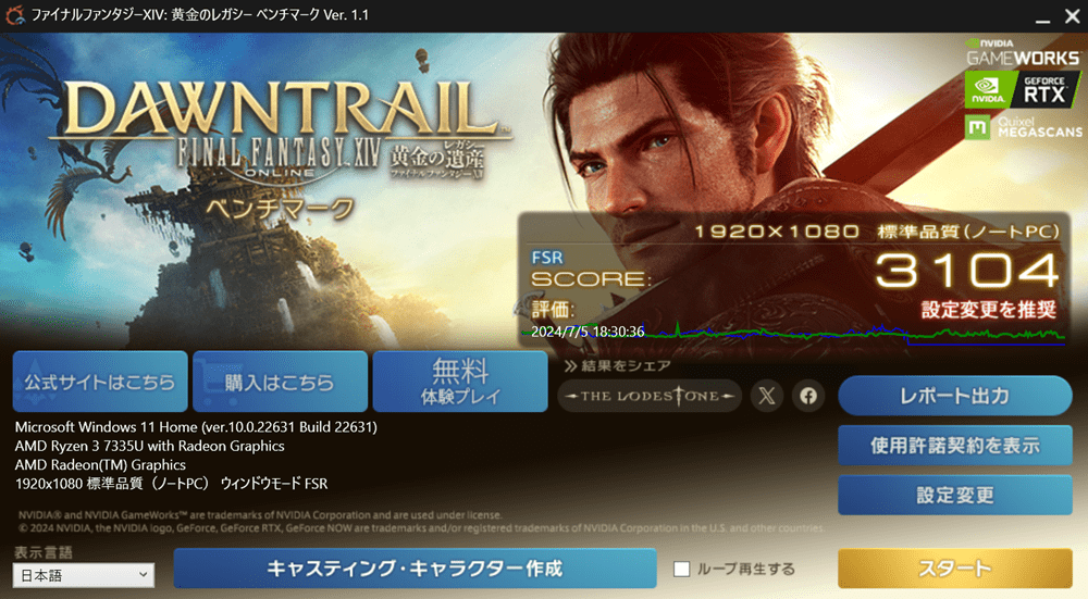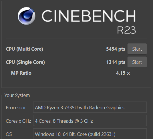 | Ryzen 3 7335U/24GB パフォーマンス | |