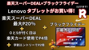 11/20~11/27 01:59まで楽天スーパーDEAL+ブラックフライデーでLenovo製品が最大20%のポイントバック、そしてポイントが最大で10倍になります!! ・スーパーDEAL最大P20%(11 … Read more