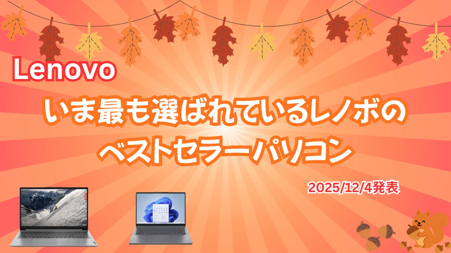 Lenovoでアカウントを作ると定期的にセール情報や特別割引クーポンなどが送られてくるのですが、2025年12月4日付けで「いま最も選ばれているレノボのベストセラーパソコン」の紹介があったのでご紹介します。