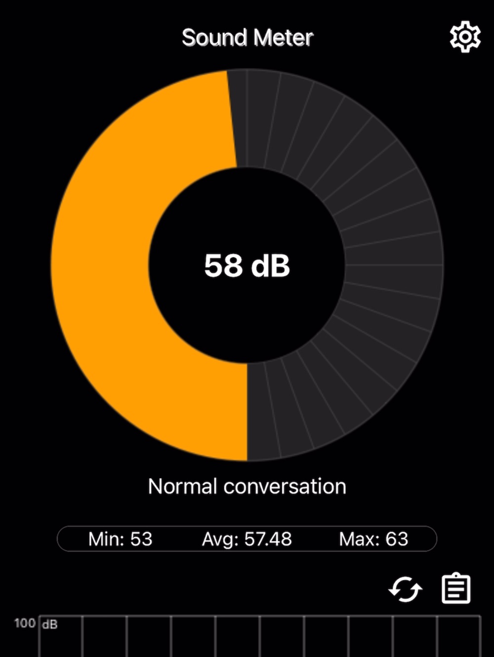 騒音値は平均約57dBとファンの音がしっかりと聞こえ、扇風機の中程度の音でした。