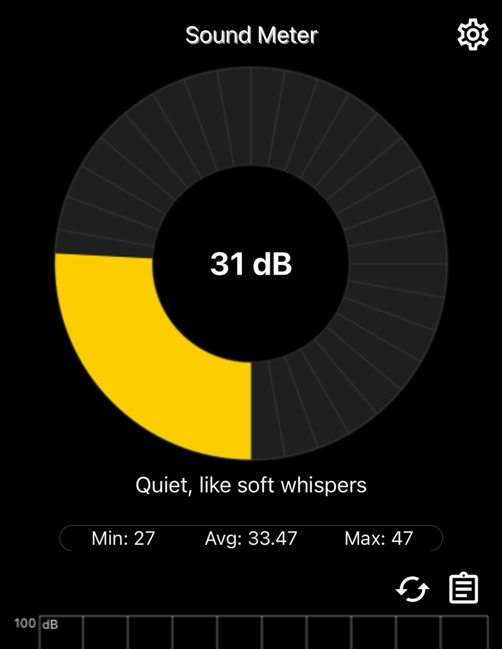 騒音値は平均約33dBで、ファノンは少し聞こえますがすごく静かです。