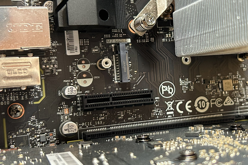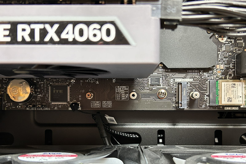 ストレージはSSD PCIe 4.0で1TBが搭載で、2スロット空きがあるので増設ができますが、グラボのそばにあるので作業がしにくいです。