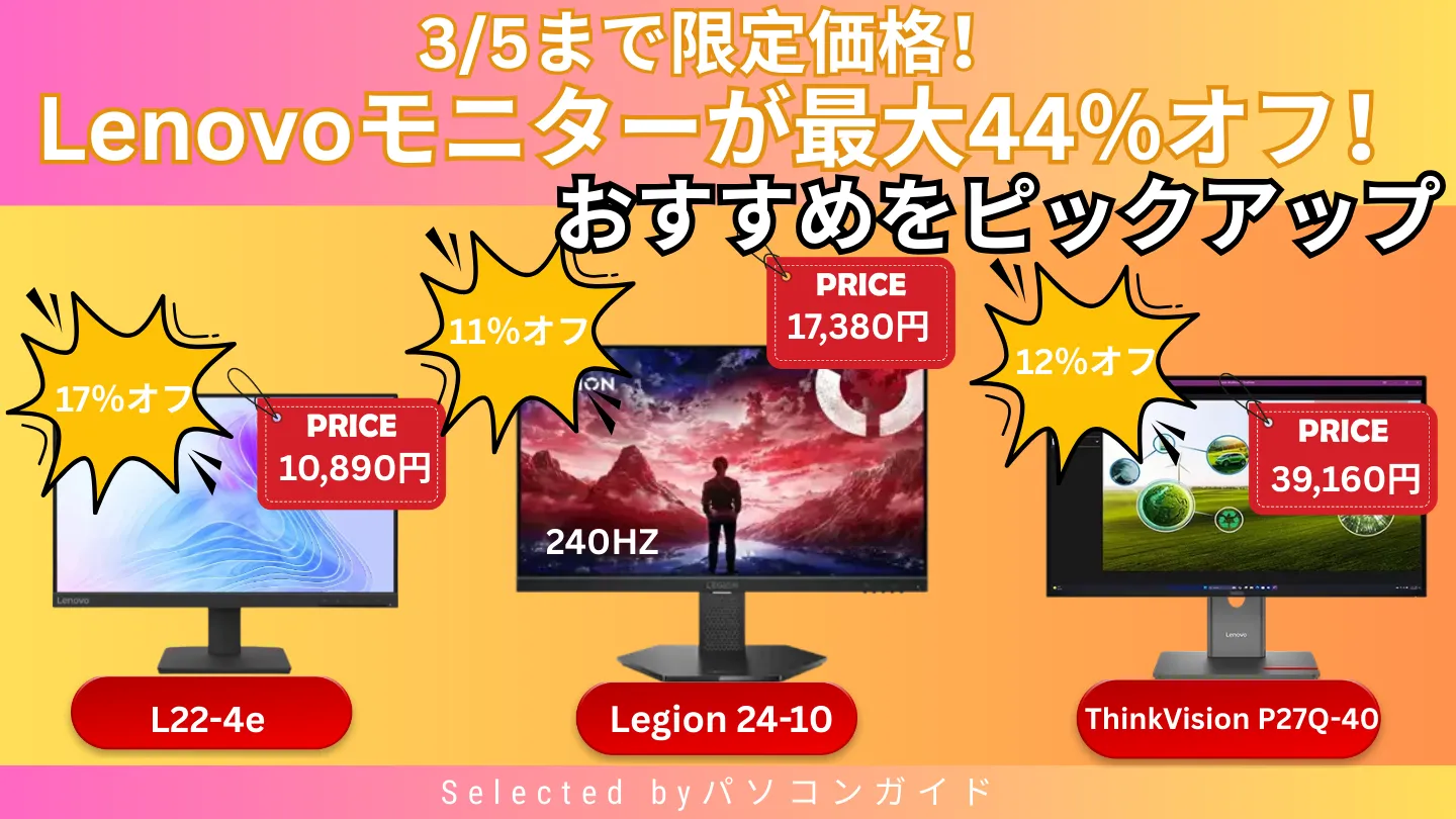 最大44%オフ!3/5までLenovoモニターが限定価格で販売中