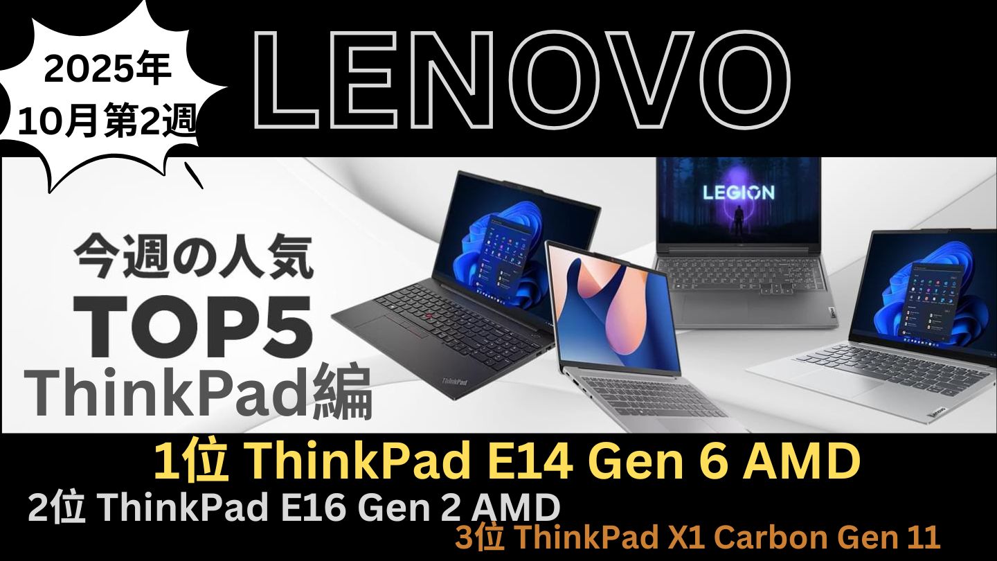 2025年10月9日付けで、Think Vantage ClubよりLenovo今週の人気TOP5が発表されたのでご紹介します。