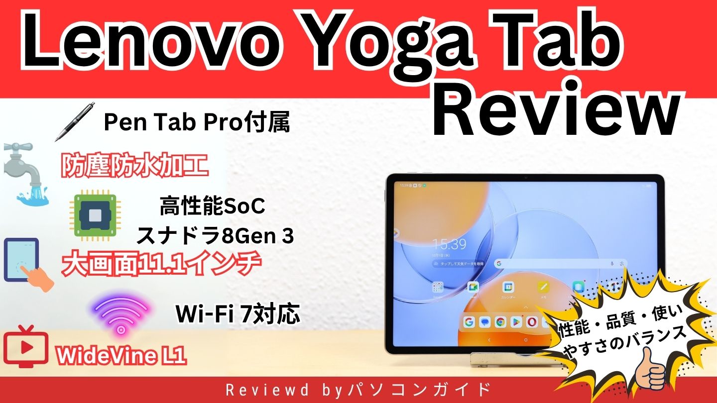 ハイエンドAndroidタブレットの中でも、性能・品質・使いやすさのバランスが際立つLenovo Yoga Tabで、Snapdragon 8 Gen 3搭載で処理性能はトップクラス、DCI-P3 98%対応の美麗ディスプレイや高速UFS 4.0ストレージ、Wi-Fi 7など最新技術も満載。