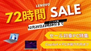 Lenovoでは12月25日までホワイトクリスマスセールを開催中で、最後の第三弾は12月25日までです。 3つの特典があり、特典と言うには「?」と思いますが、一応紹介します。 ・特典1、人気モデルと言うかほ … Read more