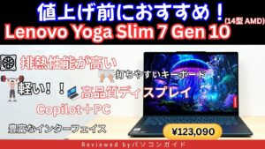 Lenovo IdeaPad Slim 3 Gen 10 (14型 AMD)のレビューです。 この価格でハイパフォーマンスのRyzen 7000HSシリーズを搭載し、メモリとSSDの増設が可能、そして排熱性能や静音性が高 … Read more