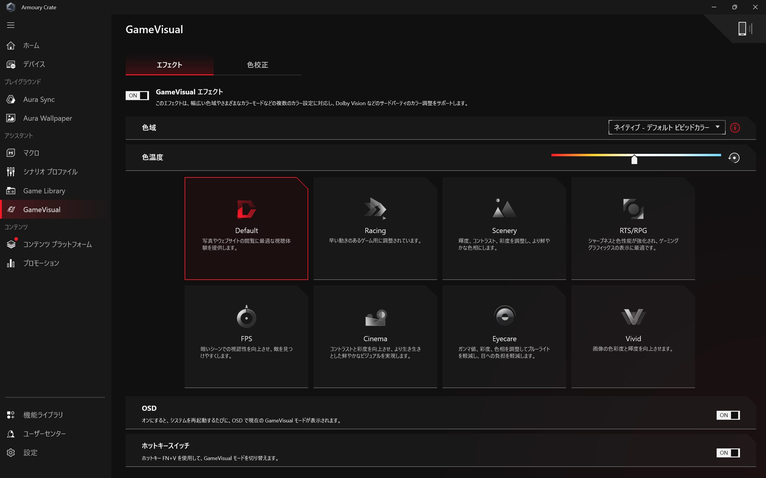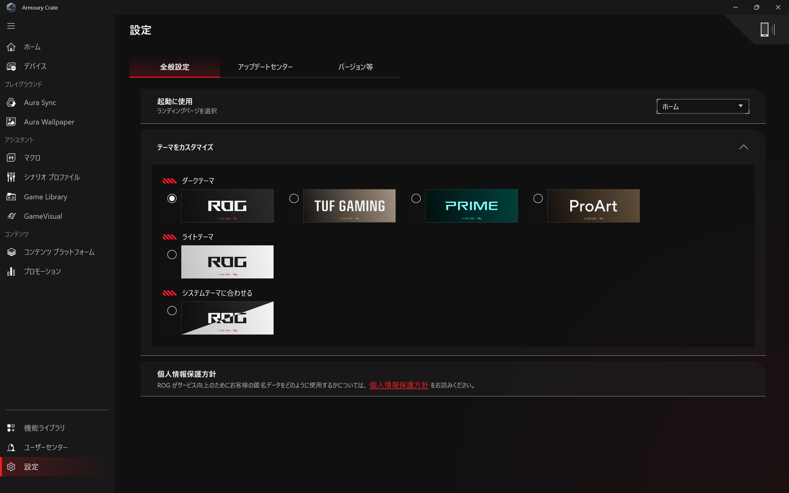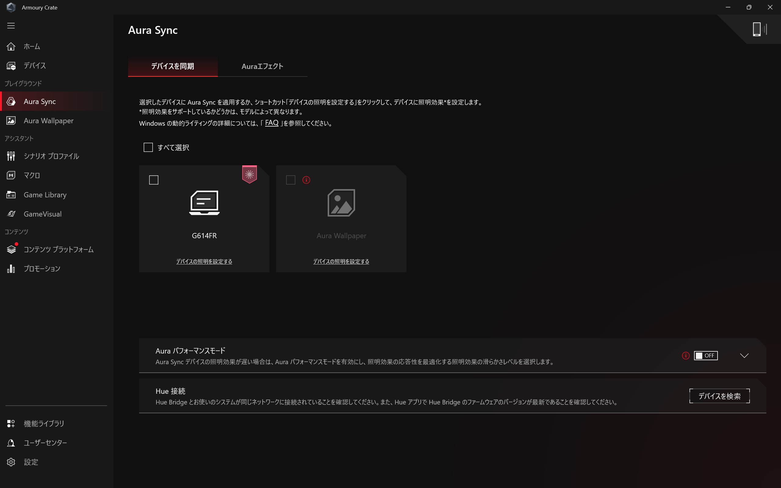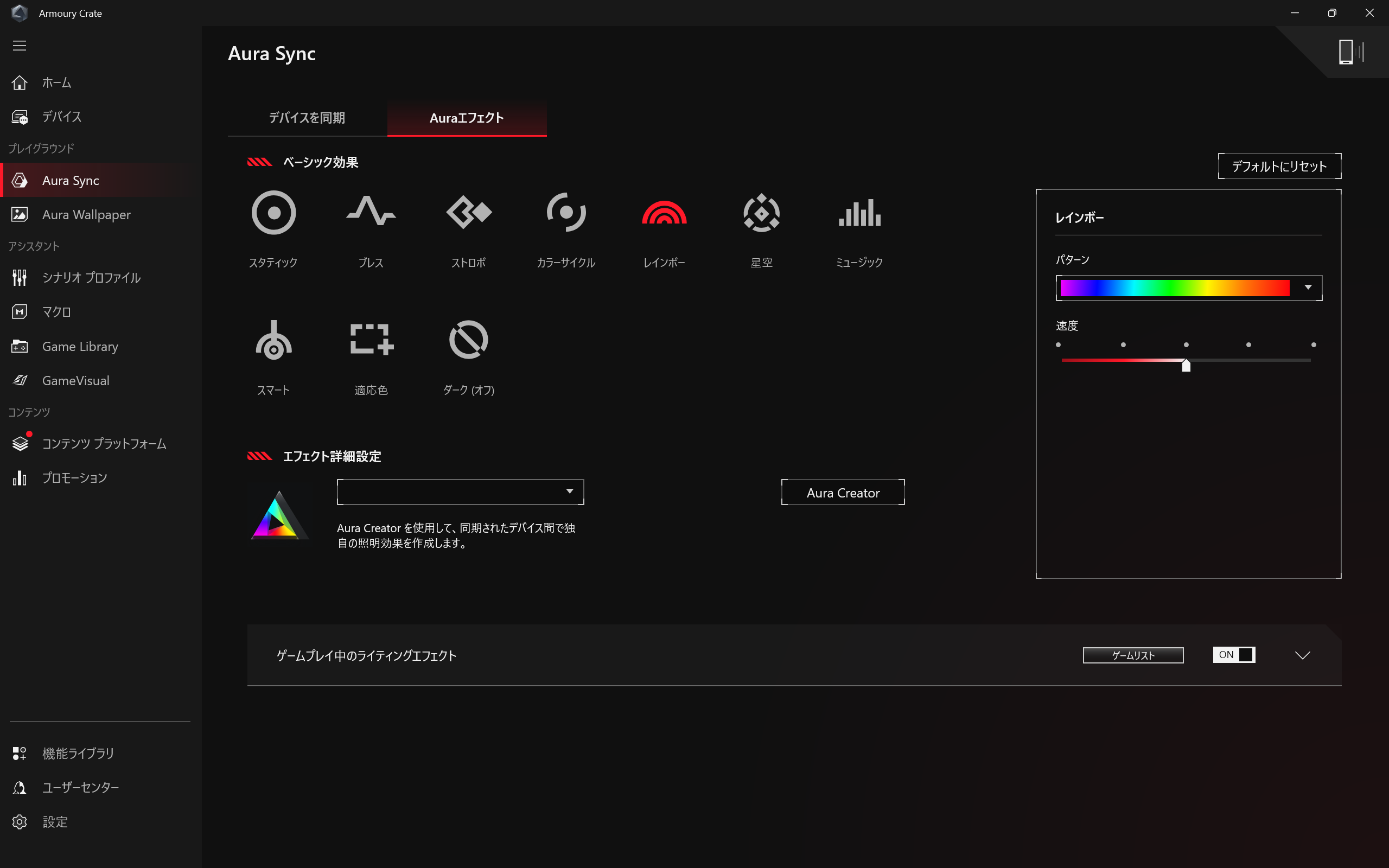 ライティングの設定はArmoury Crateからできます。