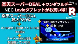 9/12~9/18 09:59まで楽天スーパーDEALでNEC製品がが最大20%のポイントバックに、そしてMEGA DEALで最大でP全額バック、+クーポンやご愛顧感謝デーなどいろいろなキャンペーンが同時開催しています。 … Read more