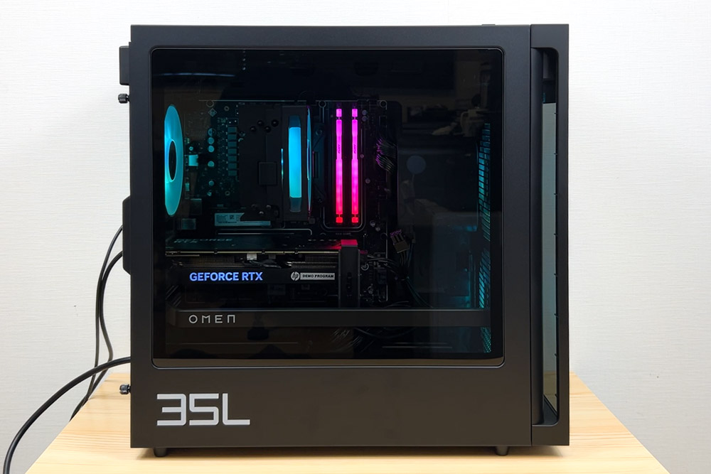 さらに、内部エアフローは前面・底面・Cryoチェンバーの3方向から吸気する構造で、冷却と静音性を両立。ARGBライティングやOMENアプリによる制御にも対応し、見た目・性能・拡張性の三拍子がそろった“長く使える”ハイエンドゲーミングPCです