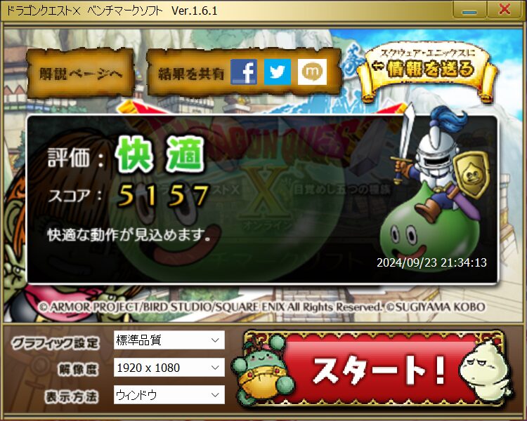 ファイナルファンタジー黄金のレガシーは、ノートPC標準品質で4794、ドラゴンクエスト10は5157でした。